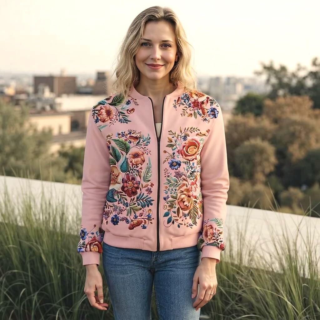 Modern Flowers Peach – Bomber Jacket